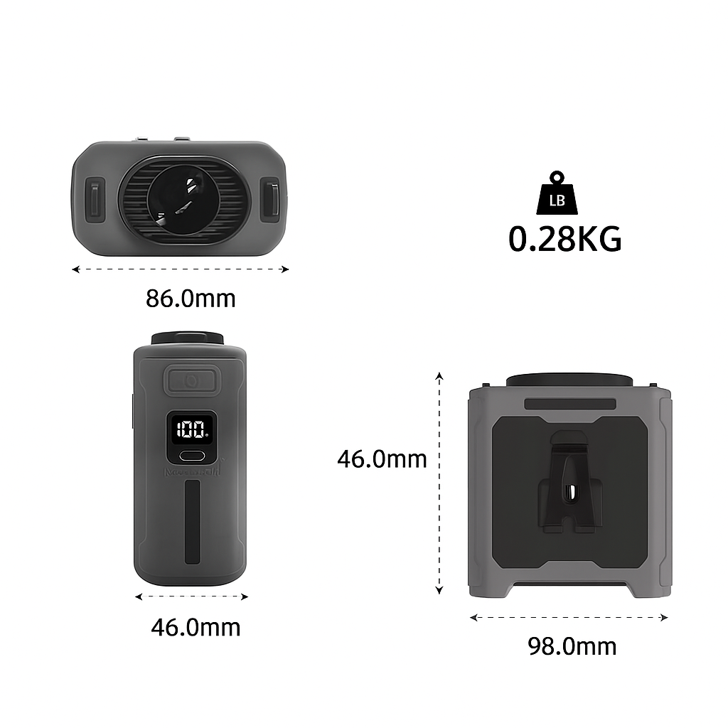 Five speed levels powered by a high-speed brushless motor adapt to any environment, while the rugged silicone cover and reinforced steel clip withstand demanding outdoor conditions. Built-in LED and SOS lights provide emergency assistance, and the power bank function charges your devices on the go. Four wearing modes include belt clip, undershirt clip, neck lanyard, or desktop stand for ultimate versatility.