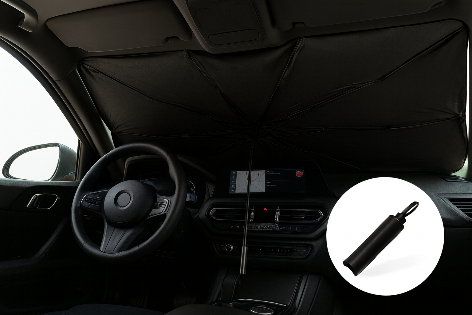 Featuring a 10-rib curved umbrella design that maximizes reflective coverage, the Sunshield installs in seconds through your windscreen. The concave structure amplifies heat deflection, while the compact fold-down design stores effortlessly in your door pocket or glovebox when not in use.