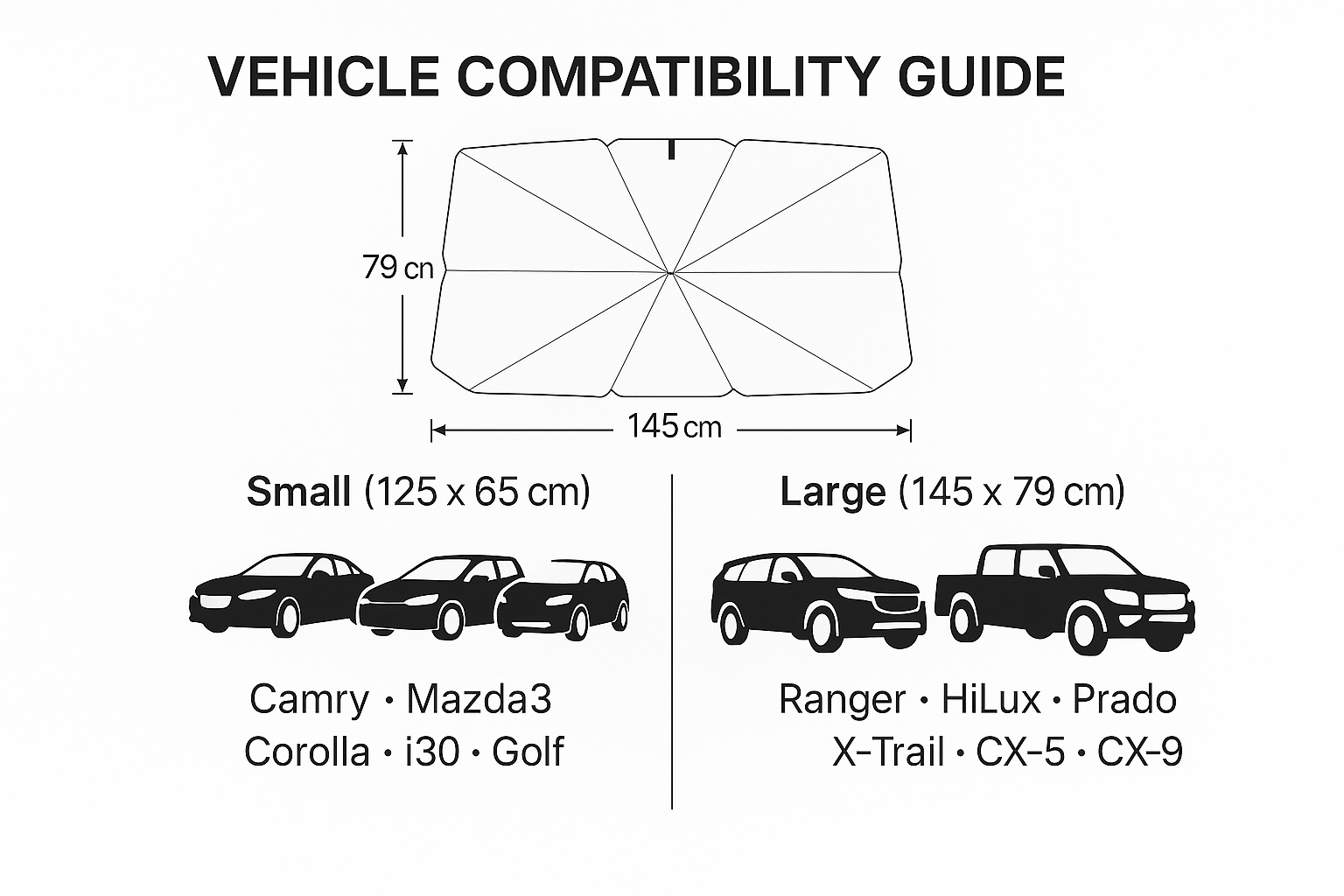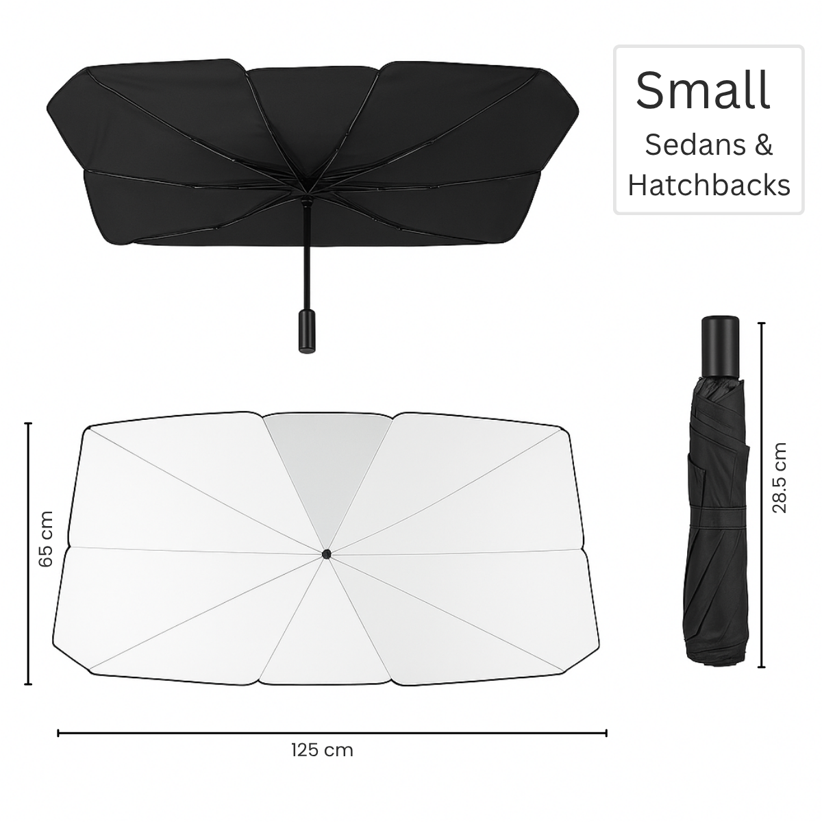 Key Features: 10-rib curved frame | Silver reflective coating | Two sizes available | Compact storage | Anti-scratch protection | Universal fit